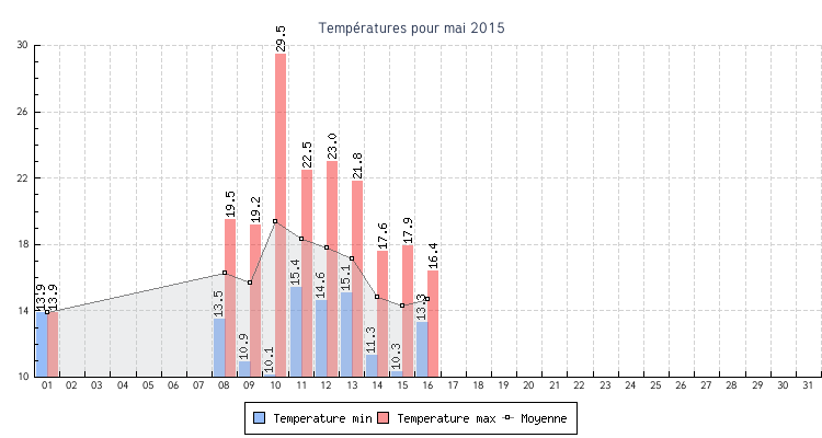 | Total | 10.1 °C | 29.5 °C | 16.2 °C | 7 km/h (39.2 km/h) | |